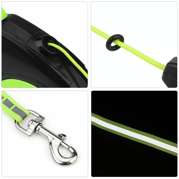 - Features: Tangle-free retraction, Reflective strip, Ergonomic handle, Durable lock buckle