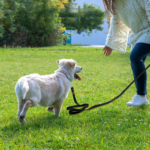 Enjoy walks with your dog safely and comfortably with this 5m Pet Tracking Towing Leash. Perfect for small and medium-sized dogs, this multifunctional lead features a durable, wear-resistant polypropylene and zinc alloy construction. The zinc alloy components are plated to resist rust, ensuring long-lasting use. A soft neoprene foam handle provides a comfortable grip and protects your hands from chafing. The tough, 2.5cm wide webbing is built to withstand daily wear and tear. For added safety during evening walks, reflective strips woven into the leash provide enhanced visibility in low-light conditions. Give your dog the freedom to explore while maintaining control with this reliable and practical dog walking lead.