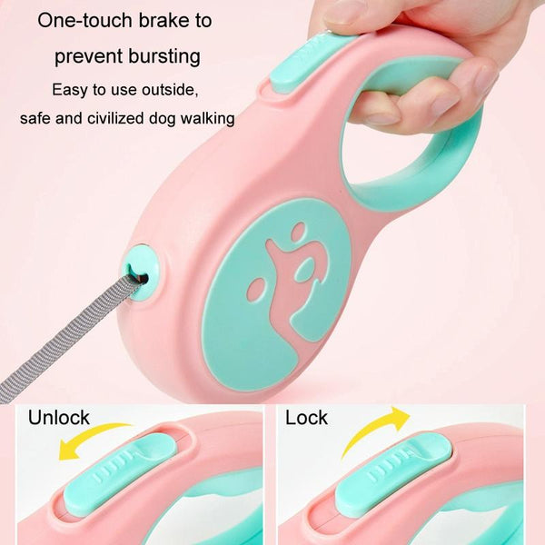 Enjoy walks with your small or medium-sized dog with this 5m automatic retractable leash. The durable plastic casing and robust polyester webbing ensure long-lasting use. The innovative U-shaped rope outlet allows for 360° tangle-free movement, giving your dog freedom while you maintain control with the easy-to-use one-button braking system. The comfortable C-shaped grip makes even extended walks a breeze. This portable and lightweight leash (approximately 260g) measures 19 x 11.5 x 4cm and extends to 5m, making it perfect for everyday walks and adventures in the park. Features include a smooth, snag-free retraction mechanism and a secure locking mechanism for added safety. Available in classic black.