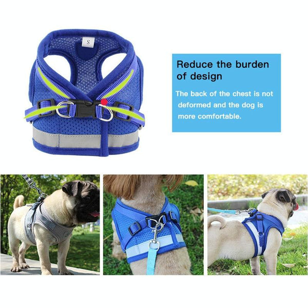 Reflective Dog Vest & Lead, XL Black - Breathable Mesh, Adjustable