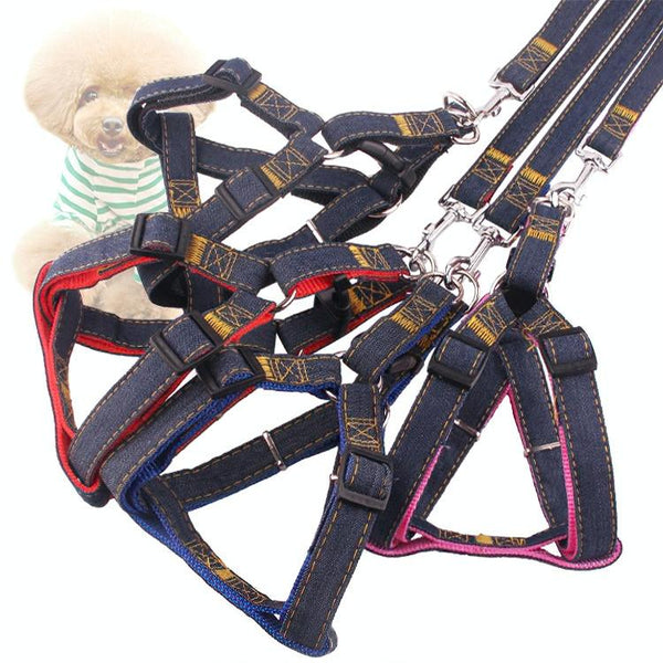 Strong Denim Dog Leash & Harness Set, Pink, Small
