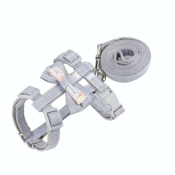Keep your feline friend safe and stylish with this Bow-knot Anti-breakaway Adjustable Cat Leash in a sophisticated light grey. Crafted from soft, comfortable, and durable double-layered polyester cotton, this leash provides a secure and gentle experience for your cat. The robust ABS safety buckle and painted alloy rope hook offer added security, preventing escapes during walks. Featuring two-way adjustment, this leash allows for a custom fit. Available in two sizes: Small (neck 22-32cm, chest 25-35cm, suitable for cats weighing 3-7kg) with a 1cm thick rope and Large (neck 25-35cm, chest 35-50cm, suitable for cats weighing 7-16kg) with a 1.5cm thick rope. Both sizes feature a generous 1.25m rope length, giving your cat plenty of room to explore while staying safely under your control. Choose the perfect fit for your cat and enjoy stress-free walks together.