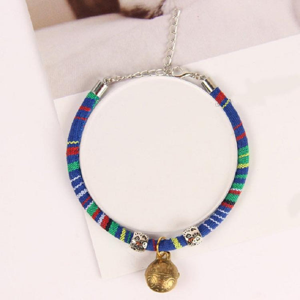 Handmade Cat Collar with Bell, Blue, Large (30+7cm) - Cats & Small Dogs