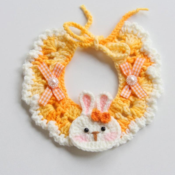 Knitted Pet Scarf, Bow Rabbit Style, Adjustable, Cat & Dog Collar