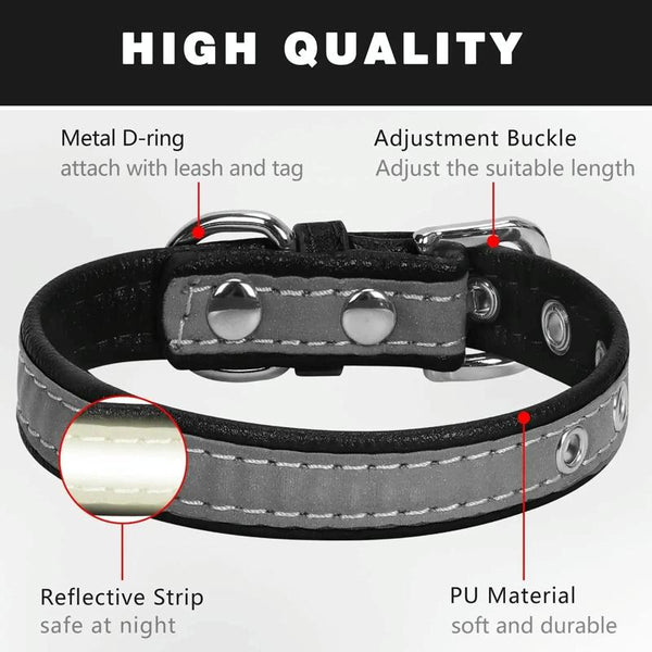 Keep your beloved pet safe and stylish with the CL181K Pet Soft Reflecting Collar in Large, featuring a luxurious velvet bottom in a sophisticated blue. This premium collar offers ultimate comfort with its soft flannel lining, while the durable PU leather exterior ensures long-lasting wear. The zinc alloy hardware, including a handy D-ring for tags and accessories, resists rust and adds a touch of elegance. Multiple buttonholes allow for a perfect fit, and the high-brightness reflective strip provides enhanced visibility for safe nighttime walks. Upgrade your pet's collar today and enjoy peace of mind knowing they are both comfortable and protected. Available in sizes XS to XXL.