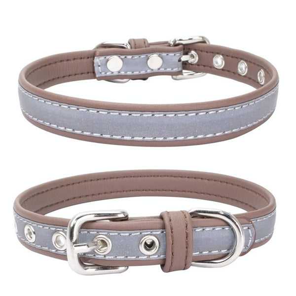 Reflective PU Leather Dog Collar, Small, Light Brown - CL181K
