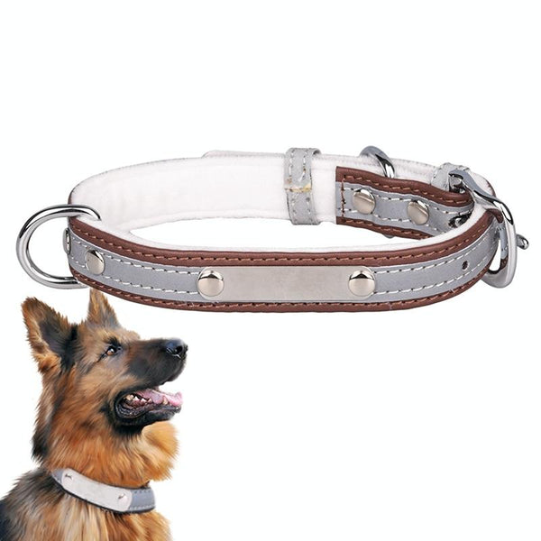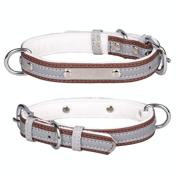 Reflective PU Leather Dog Collar, Brown, S - Soft & Adjustable