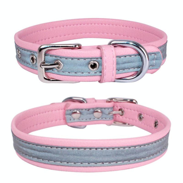Reflective Pink XS Pet Collar - Soft PU Leather, Adjustable