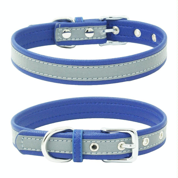 Reflective PU Leather Dog Collar, XXL, Dark Blue - CL181K