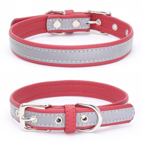 Reflective Red PU Leather Dog Collar XXL | CL181K