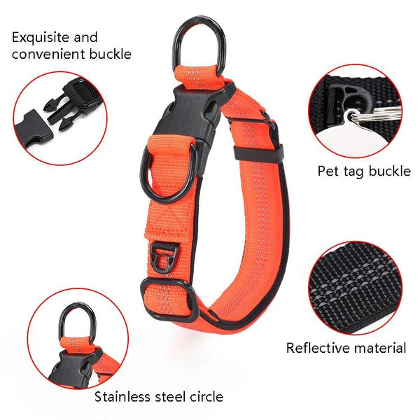Enhanced Safety: Incorporate reflective material for increased visibility during night-time walks. The rust-proof stainless steel round buckle is not only durable but also lightweight, reducing strain on your dog's neck.