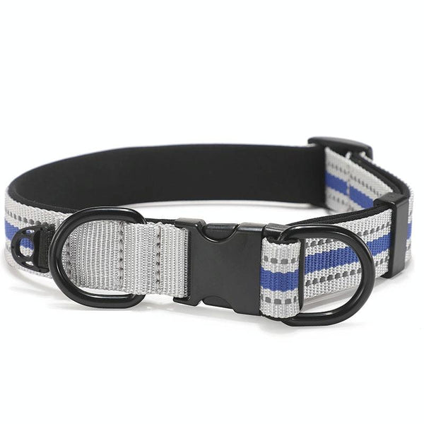 Reflective Dog Collar, Large, Blue, Nylon, Strong Buckle