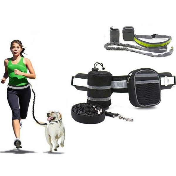 Reflective Dog Running Belt & Lead Set with Bags (Red)