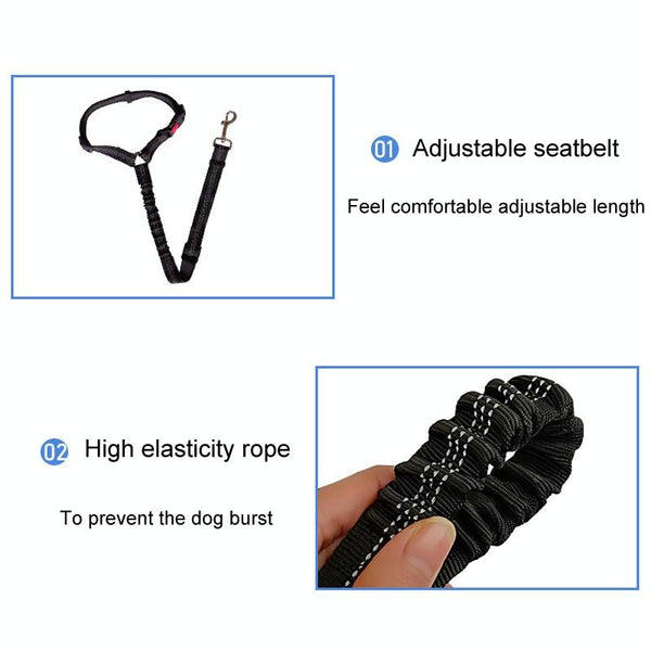 Dog Car Seat Belt, Elastic & Reflective, Grey, Adjustable