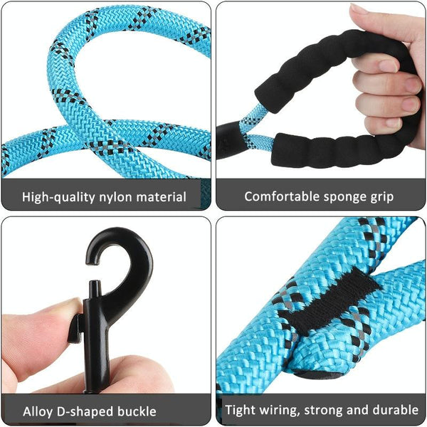 Control your canine companion with ease using our Double Handle Dog Lead. Crafted from durable, high-quality nylon, this lead is perfect for even the largest breeds. Enjoy comfortable walks thanks to the ergonomic sponge handles, offering a secure grip without fatigue. The dual handles provide ultimate control – a standard handle for relaxed strolls and a traffic handle for navigating busy areas. Enhanced visibility is ensured with reflective stitching for safe nighttime walks. Plus, a convenient D-ring allows for easy attachment of keys or poop bags.