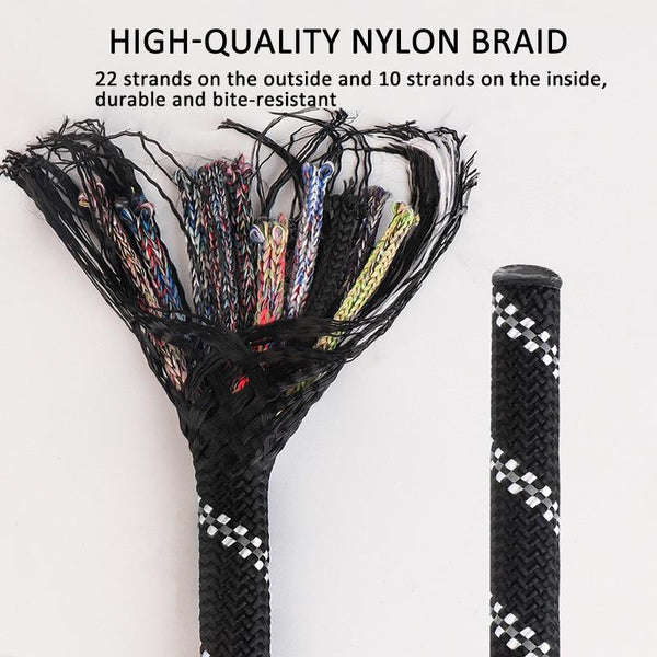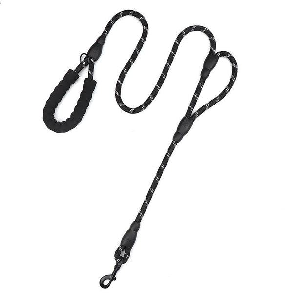 Reflective Double Handle Dog Lead - Nylon Rope, 180cm, Black
