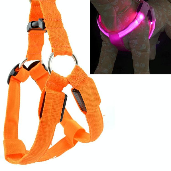 LED Dog & Cat Harness, Orange, M (38-50cm Chest)