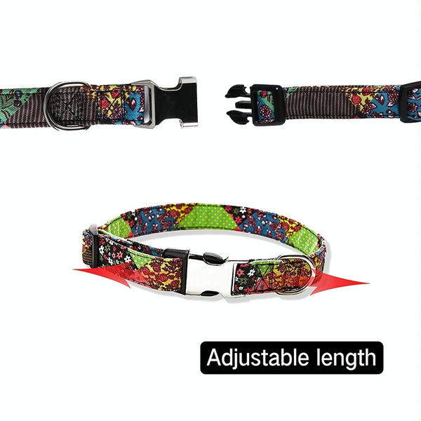 Bohemian Floral Dog Collar XL (70cm) - Metal Buckle