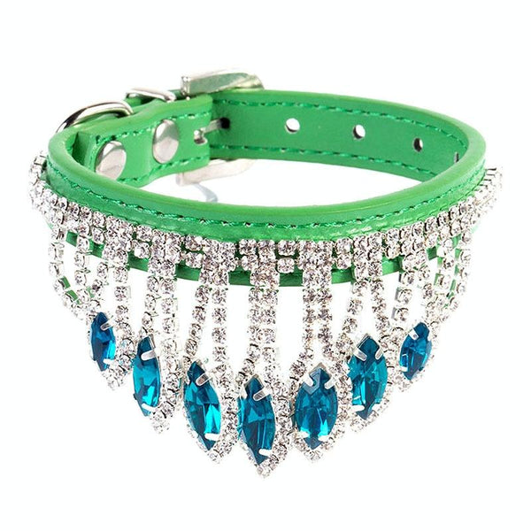 Rhinestone Pet Collar, Green, Medium - Cat & Puppy