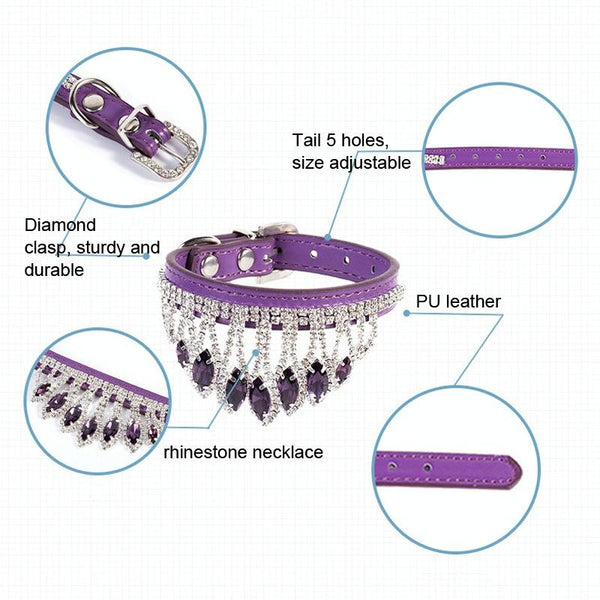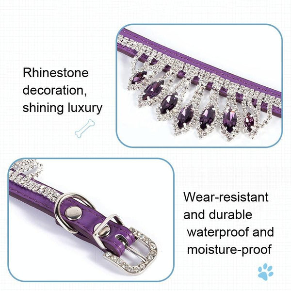 Spoil your furry friend with this glamorous gem rhinestone pet collar, perfect for puppies and cats. Crafted from durable PU leather, this adjustable collar features a sparkling rhinestone design and a secure diamond clasp. The waterproof and moisture-resistant material ensures long-lasting wear, while the five adjustable holes provide a comfortable fit for your beloved pet. Treat your cat or dog to a touch of sparkle with this stylish and practical accessory. Available in size medium (Green).