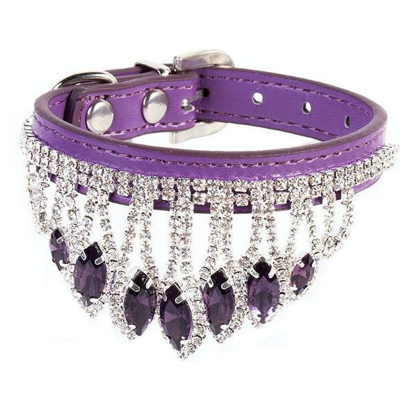 Rhinestone Puppy/Cat Collar, XS Purple - PU Leather