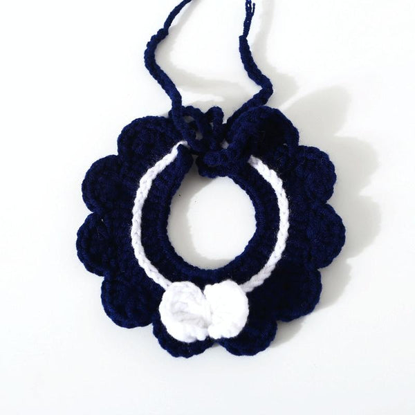 Spoil your furry friend with this charming handmade woollen cat and dog bib, featuring an adjustable flower bow knot. Perfect for adding a touch of elegance to everyday wear or special occasions. Crafted from soft, delicate wool, this bib is comfortable and durable. The adjustable lace-up design ensures a perfect fit for medium-sized pets with neck circumferences between 25-35cm. Available in a sophisticated navy blue.