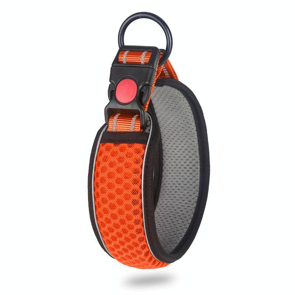 Reflective Honeycomb Dog Collar, Breathable, Anti-Strangle, XL, Fluorescent Orange