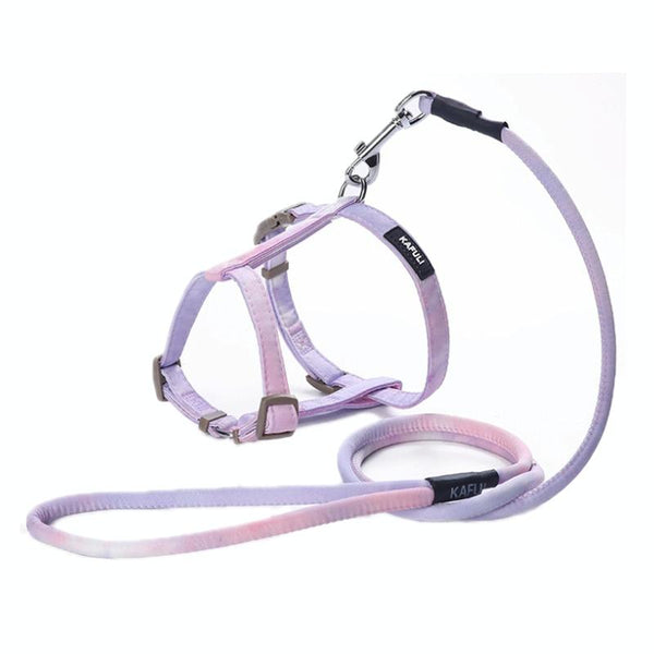 Durable and Comfortable: The KAFULI Pet Adjustable I-Shape Harness and Leash in a stylish gradient purple is designed with your pet's comfort and safety in mind. Crafted from robust nylon, this size medium harness features a strong, non-fraying cord built for long-lasting wear.