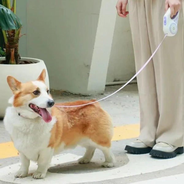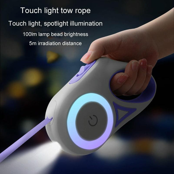 Enjoy safe, illuminated dog walks with this LED Luminous Pet Dog Leash. Available in a vibrant 3-metre green, this retractable lead features a built-in high-brightness LED light for enhanced visibility in low-light conditions. The light illuminates the path ahead, ensuring you and your dog are seen during evening and early morning strolls. With one-button lock and unlock functionality, control is always at your fingertips, allowing for quick reactions. The comfortable, ergonomic soft-rubber handle features a unique U-shaped rope outlet, preventing tangles and ensuring smooth extension and retraction. The stylish RGB light ring adds a touch of fun with its automatic colour-changing breathing light. Requires 2 x AAA batteries (not included). Weighing approximately 220g and measuring 17.5 x 9 x 4.8cm, this 3m lead is perfect for comfortable and controlled dog walking.