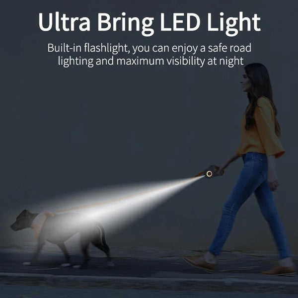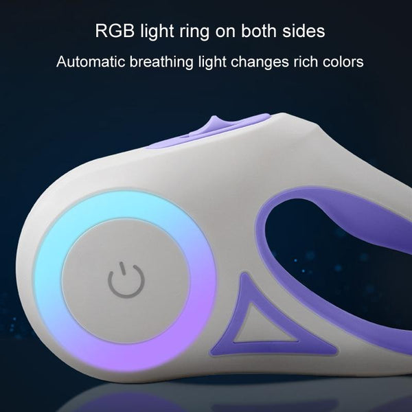 Enjoy safe, illuminated dog walks with this LED Luminous Pet Dog Leash. Available in a vibrant purple, this retractable leash features a built-in LED light for enhanced visibility in low-light conditions. Choose between a 3m (approximately 220g, 17.5 x 9 x 4.8cm) or 5m (approximately 310g, 18.5 x 11 x 5cm) length to suit your needs. The durable plastic and nylon construction ensures long-lasting use. The ergonomic, soft rubber handle provides a comfortable grip, while the one-button lock and unlock system allows for easy control. The unique U-shaped rope outlet prevents tangling and ensures smooth retraction. Eye-catching RGB light rings add a touch of style with automatically changing colours. Requires 2 x AAA batteries (not included).