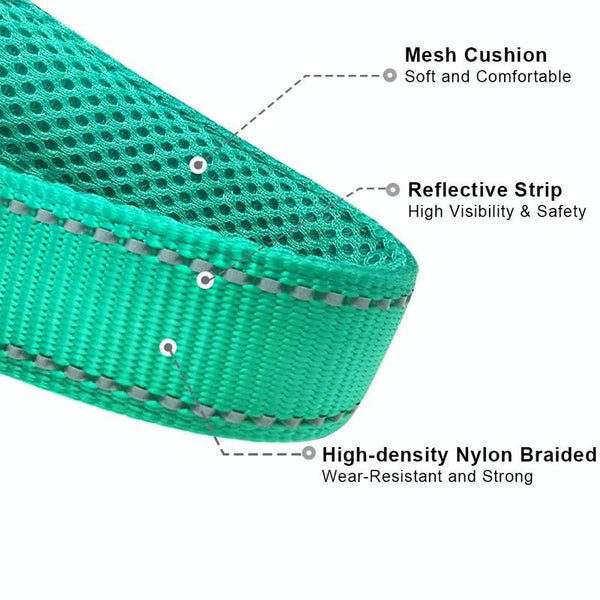 Keep your canine companion safe and visible with this adjustable Nylon Reflective Filament P Chain Collar in a vibrant grass green. Crafted from durable, wear-resistant nylon webbing, this collar features integrated reflective threading for enhanced visibility during night-time walks. The dense stitching and secure metal ring ensure lasting strength and reliability, while a soft mesh padding on the inner webbing provides comfortable all-day wear. Suitable for dogs of all sizes, this adjustable collar is perfect for any season.