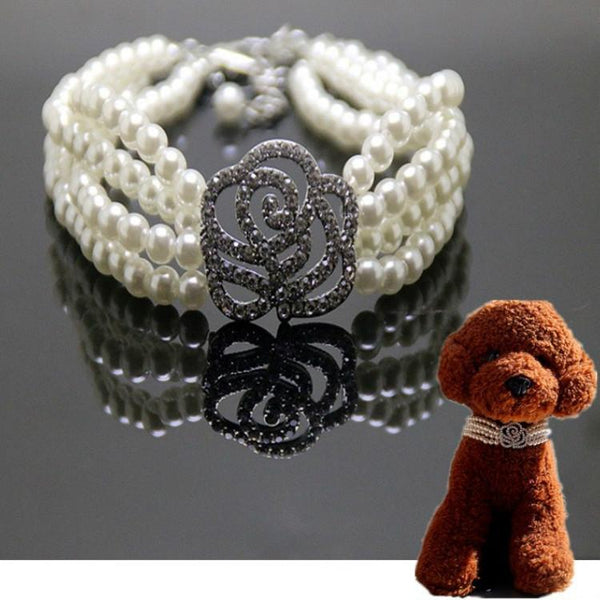 Glam up your furry friend with this elegant Pearl Dot Diamond Rose Flower Pet Collar. This size L (approximately 30cm with a 5cm extender chain) collar in shimmering white is perfect for larger dogs and cats. Crafted from imitation pearl, rhinestone, and durable zinc alloy, this beautiful accessory offers a unique and versatile look. The adjustable design ensures a comfortable fit, while the high-quality materials are safe, non-toxic, and harmless for your beloved pet. Add a touch of sparkle to their everyday adventures!