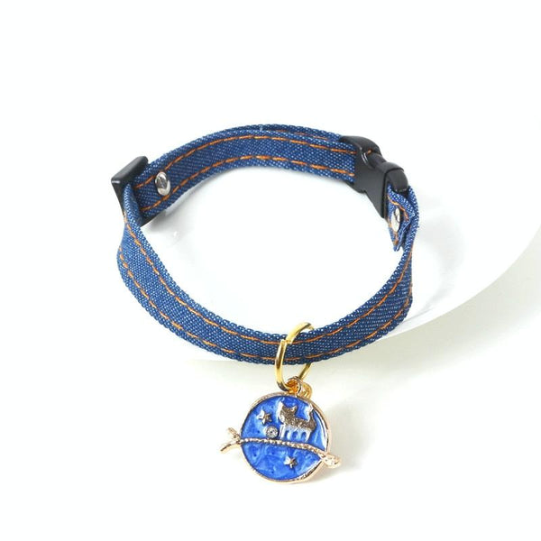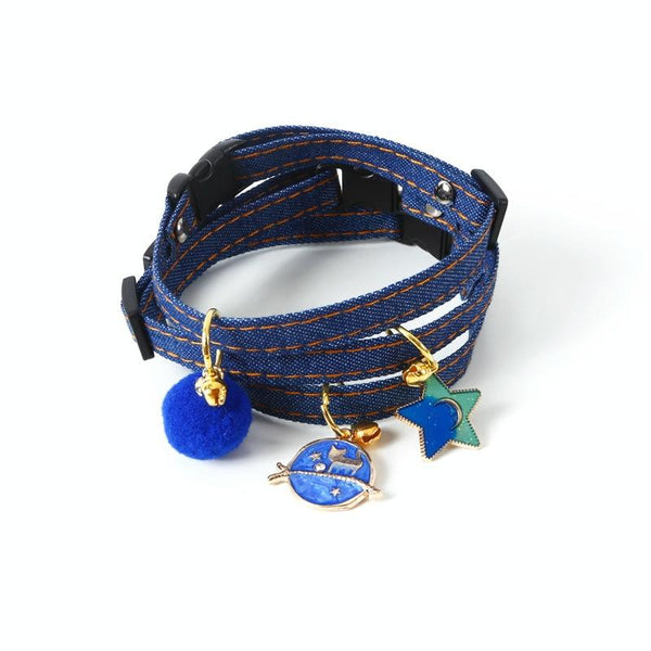 Cowboy Cat & Dog Collar with Bell, Denim, S 16-32cm