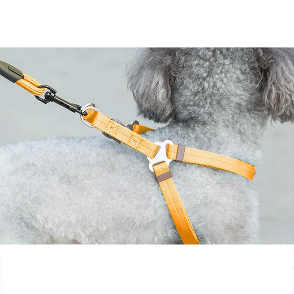 Upgrade your dog walks with this stylish and durable orange pet collar, harness, and leash set. Perfect for small dogs weighing under 8kg, this set includes a comfortable harness (chest size: 34-50cm), adjustable collar (neck size: 24-35cm), and a 120cm leash. Enjoy fashionable walks while ensuring your pet's safety and comfort.