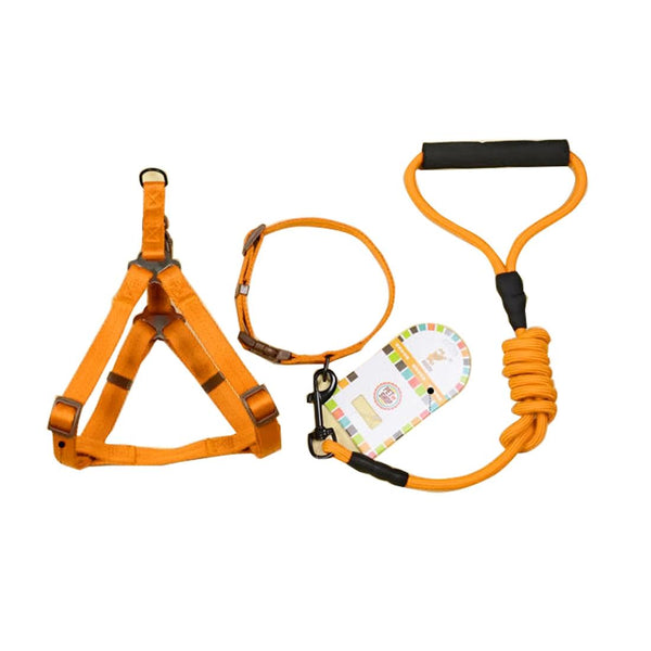 Orange Dog Collar, Harness & Leash Set - Small (Up to 8kg)