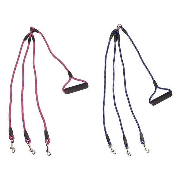 Enjoy walks with your canine companion with this versatile 3-in-1 dog lead, crafted from durable nylon and featuring quality hardware. This lead allows you to easily switch between one or three dogs, offering flexibility and control on your adventures. The comfortable handle provides a secure grip, while the 75cm traction section gives your dog ample space to explore. With a total length of 124cm, this blue lead is perfect for daily walks, training, and outings with multiple dogs.