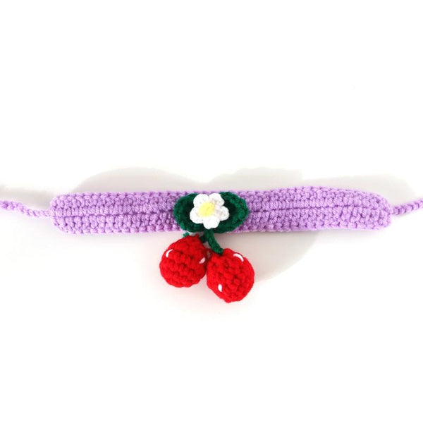 Handmade Knitted Cherry Pet Collar, Purple, M (25-30cm), Cat/Dog