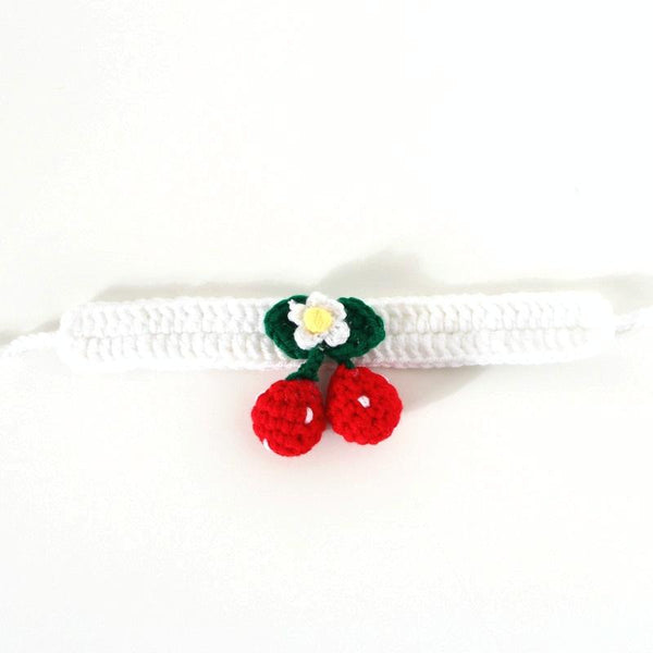 Handmade Knitted Cherry Pet Collar (S, White, 20-25cm)