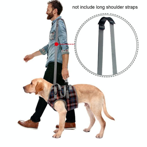 Support your dog's mobility with this Pet Leg Strap, designed to assist elderly, injured, or disabled dogs. This size L Front Leg (Orange) support is ideal for dogs with a chest measurement of 76-86cm and a neck circumference of 53cm, typically weighing 20-30kg. Crafted from durable polyester with a breathable mesh lining for comfort, it features an adjustable telescopic buckle extending up to 20cm for a secure and custom fit. This lifting aid provides crucial support for dogs experiencing mobility challenges due to injury, amputation, arthritis, hip dysplasia, or old age. The supportive harness helps stabilise your dog during walks and assists with navigating stairs or entering vehicles. Please note, this product includes the front leg support only and does not include the optional shoulder straps.