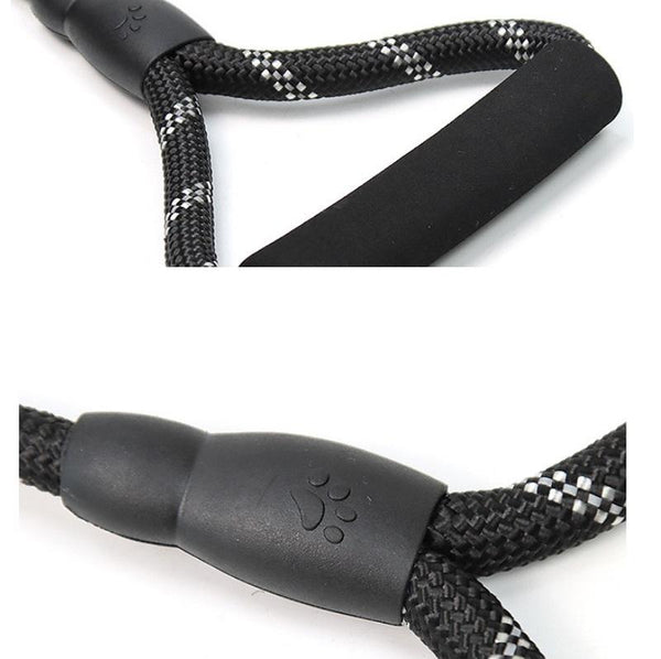 Ensure safe and comfortable dog walks with this robust, reflective dog leash, ideal for medium and large breeds. Crafted from durable polypropylene with a 360° rotating alloy buckle, this lead provides reliable control. The comfortable, non-slip sponge handle and protective rubber sleeve enhance your walking experience. High-visibility reflective threading ensures safety during night-time strolls. This 150cm long leash weighs just 150g, offering a perfect balance of strength and lightweight comfort.