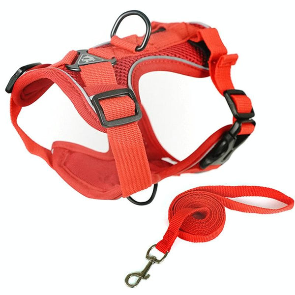 Reflective Dog Harness & Lead Set, Red, M, Breathable Mesh, Cat/Small Dog