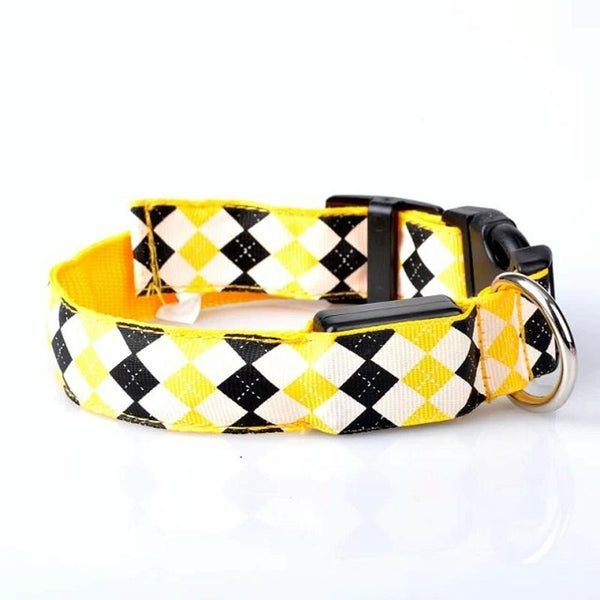 LED Dog Collar, Plaid Yellow, Small, USB Rechargeable