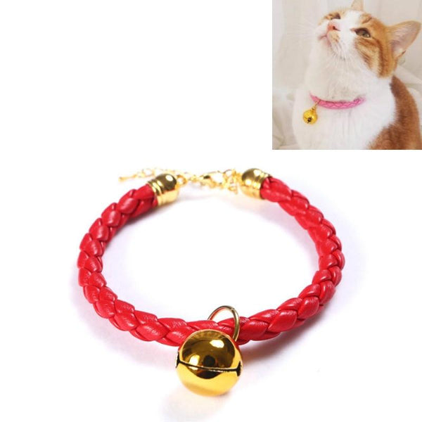 Red PU Leather Pet Collar with Bell, M (25-30cm), Cats & Small Dogs