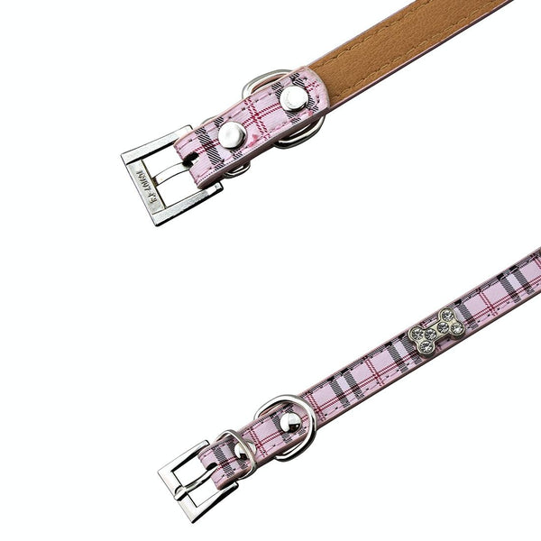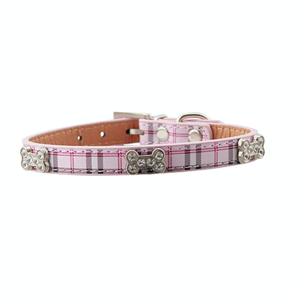 Pink PU Leather Dog Collar with Bones, Size L (2.5x51cm)