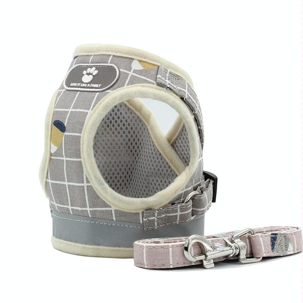 Keep your small dog safe and comfortable with this Reflective & Breathable Vest Traction Rope Pet Chest Leash in Khaki. Made from lightweight, breathable polyester mesh, this size XS leash is perfect for pets weighing under 1.5kg with a chest circumference of 26-29cm. The reinforced D-ring ensures durability for even the most enthusiastic walkers, while the reflective strips offer enhanced visibility during night-time strolls. The 120cm rope provides ample freedom for your furry friend to explore. This comfortable and secure vest harness is designed to distribute pressure evenly, preventing choking and making walks more enjoyable for both you and your companion. Also available in sizes S, M, L, and XL to suit a variety of breeds and sizes.