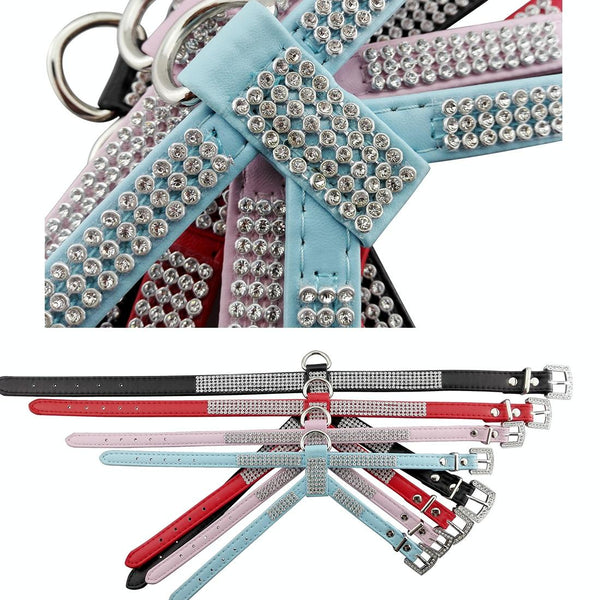 Sparkle and shine on every walk with this luxurious Rhinestone PU Leather Dog Harness. Crafted from soft, breathable PU leather, this stylish dog vest offers ultimate comfort and durability for your furry friend. The dazzling rhinestone embellishments add a touch of glamour, making your dog the star of the park. This harness is perfect for everyday walks, training sessions, or special occasions. The strong and secure chest strap and included lead ensure reliable control, while the soft padding prevents chafing. Available in size L, with a lead measuring 1.5cm wide and 115cm long. Treat your beloved companion to the perfect blend of style, comfort, and safety.