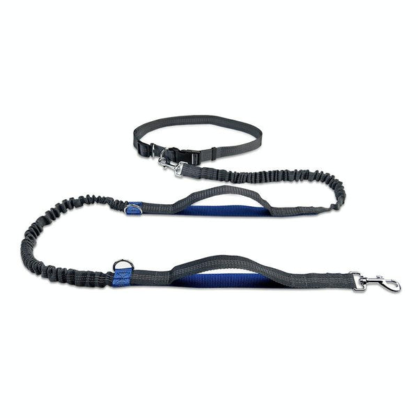 Reflective Double Handle Bungee Dog Lead with Waist Belt (Royal Blue)