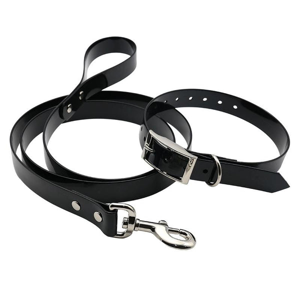TPU Dog Collar & Retractable Lead, Small, Black (40cm Collar, 120cm Lead)