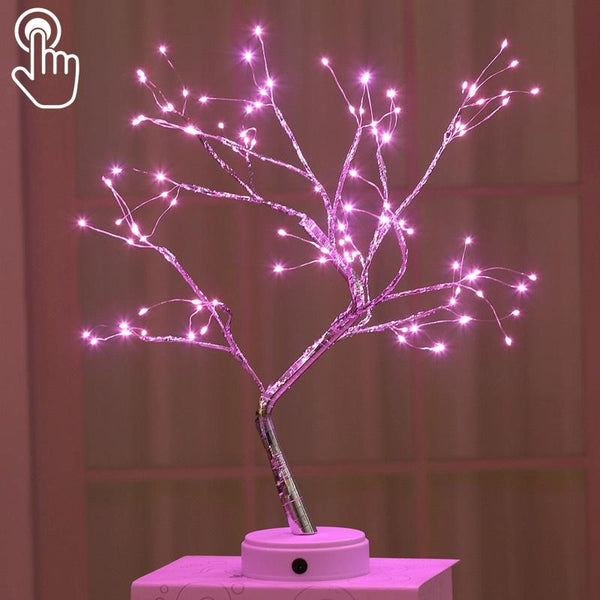 108 LEDs Copper Wire Tree Table Lamp Creative Decoration Touch Control Night Light (Pink Light)