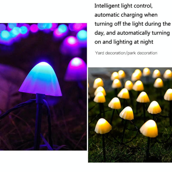 6.5m 30 LEDs Solar Mushroom Lawn Light Outdoor Waterproof Garden Villa Landscape Decorative String Lights(Warm White Light)